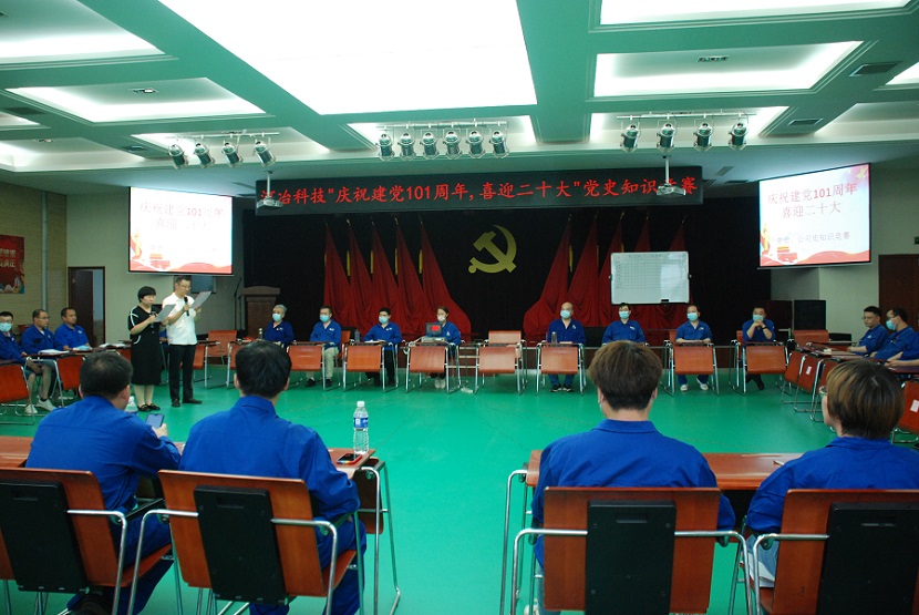2022年7月1日,在建黨101周年的特殊日子里,公司黨群工作部組織的"慶祝建黨101周年、喜迎二十大”黨史新中國(guó)史、公司發(fā)展史知識(shí)競(jìng)賽在多功能廳隆重舉行。公司黨委副書記梁敬斌、黨委委員、副總經(jīng)理侯國(guó)棟、副總經(jīng)理陳彥錦應(yīng)邀出席比賽現(xiàn)場(chǎng)。黨群工作部部長(zhǎng)以及各黨支部書記擔(dān)任本次比賽的仲裁團(tuán),公司九支隊(duì)伍參加比賽,每支隊(duì)伍的選手都由兩名正式黨員和一名入黨積極分子組成。