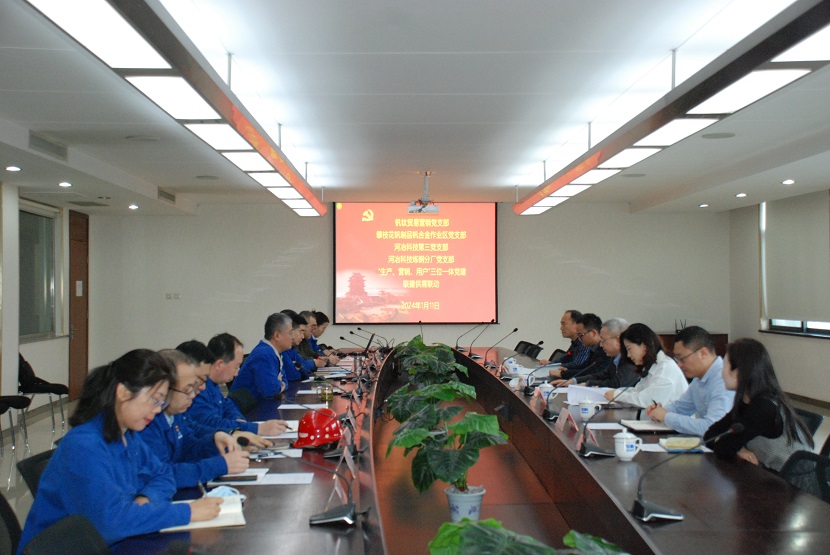 2024年度“產--用三體聯動黨建聯建活動于2024111日在河冶科技舉辦,河冶科技黨委書記、董事長總經理米永旺、黨委副書記、常務副總經理梁敬斌、工會主席趙金伶、攀鋼釩鈦貿易公司黨總支書記、總經理汪朝云參加了本次活動。