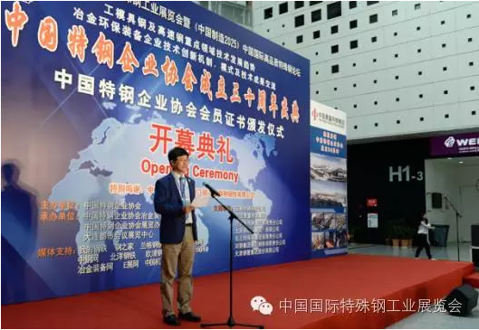 中國國際特殊鋼工業(yè)展覽會(huì)開幕式由九屆六次執(zhí)行會(huì)長寶鋼特鋼總經(jīng)理龐遠(yuǎn)林主持,中國特鋼企業(yè)協(xié)會(huì)會(huì)長中信泰富特鋼集團(tuán)董事長俞亞鵬致開幕詞,中國鋼鐵工業(yè)協(xié)會(huì)副會(huì)長王利群和中國鋼研科技集團(tuán)副總經(jīng)理田志凌致賀詞。參加開幕式剪彩的領(lǐng)導(dǎo)及嘉賓有:寶鋼特鋼有限公司總經(jīng)理龐遠(yuǎn)林、中信泰富特鋼集團(tuán)董事長俞亞鵬、西寧特殊鋼集團(tuán)有限責(zé)任公司董事長、黨委書記楊忠、中國鋼鐵工業(yè)協(xié)會(huì)副會(huì)長王利群、中國鋼鐵工業(yè)協(xié)會(huì)副會(huì)長、冶金規(guī)劃研究院院長李新創(chuàng)、中國鋼研科技集團(tuán)有限公司副總經(jīng)理田志凌、中信泰富特鋼集團(tuán)總裁錢剛、東北特殊鋼集團(tuán)有限責(zé)任公司總工程師董學(xué)東、太原鋼鐵(集團(tuán))有限公司副總柴志勇、舞陽鋼鐵有限責(zé)任公司董事長鄧建軍、天津鋼管集團(tuán)有限公司副總工程師楊在安、中國特鋼企業(yè)協(xié)會(huì)不銹鋼分會(huì)常務(wù)副會(huì)長劉復(fù)興、河鋼集團(tuán)石鋼公司總工程師齊建軍等。開幕式后全體參觀了展覽會(huì)。